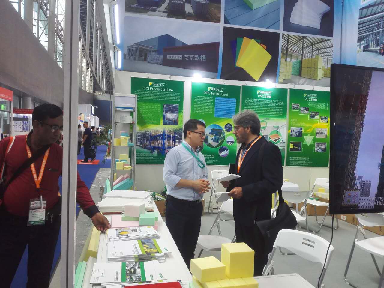本次展會(huì)更加突出環(huán)保主題,南京歐格生產(chǎn)的擠塑板和PVC發(fā)泡板因?yàn)榫哂协h(huán)保和綠色節(jié)能的特點(diǎn)吸引了前來(lái)參觀的國(guó)內(nèi)外嘉賓駐足交流,歐格的擠塑板設(shè)備因其優(yōu)秀的生產(chǎn)工藝和穩(wěn)定的產(chǎn)能更是引起了嘉賓們高的關(guān)注度。在與我們做了充分的溝通和了解后紛紛表達(dá)了合作意向,并給我們提出了很多寶貴意見。