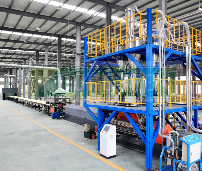 歐格回收造粒系統(tǒng)直接回收在XPS擠塑板生產(chǎn)過程中所產(chǎn)生的邊角料和粉末,通過再加工過程后可直接與原料混合,繼續(xù)用于生產(chǎn)。