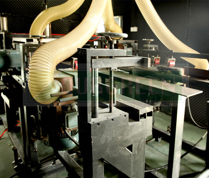 特有的冷卻輸送架末端采用彈性可調(diào)裝置,保證板材兩側(cè)被切割部分的準(zhǔn)確度和相同性。