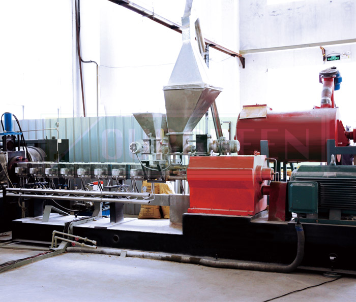 公司采購螺桿、加熱圈、底板、齒輪箱、電機等材料將其配套組成雙螺桿擠出機后投入使用。特有的雙螺桿設(shè)計使得原料可以充分混合,有效的確保了終產(chǎn)品的結(jié)構(gòu)和密度。根據(jù)物料在螺桿中的溫度、壓力、黏度等的變化特征,可將螺桿分為加料段、壓縮段、均化段和混合段。